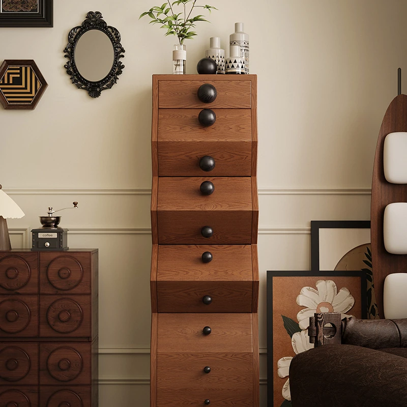 Elegant Oak Home Vintage Solid Wood Modular Storage Cabinet Set - Retro Chest of Drawers for Multifunctional Organization, Ideal for Stylish Interiors