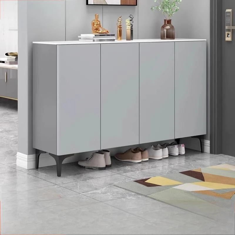 Elegant Large Capacity Stone Look Shoe Cabinet for Home Entryway - Stylish Storage Solution for High-End Hallways and Entrances