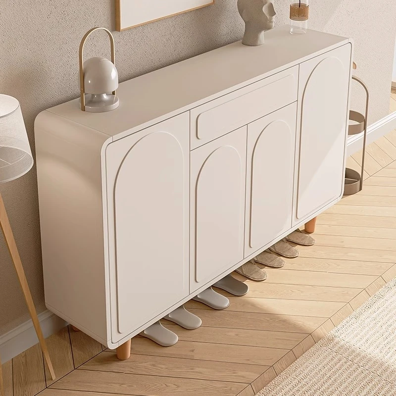 Aisennai Cream Shoe Cabinet – Stylish Solid Wood Storage Solution for Home Entryway, Large Capacity Wall-Mounted Design, Perfect for Organizing Shoes by the Door.