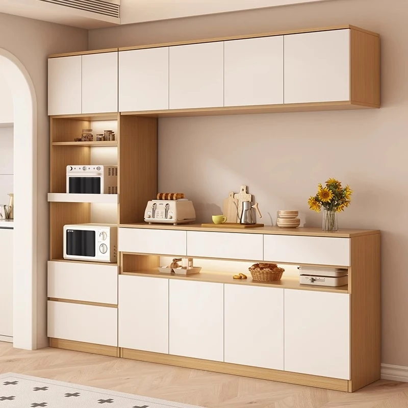 Elegant Solid Wood Cream Finish Sideboard & Wall-Mounted Cabinet - Modern Minimalist Storage Shelf for Kitchen & Living Room, Featuring Stylish Wine Rack
