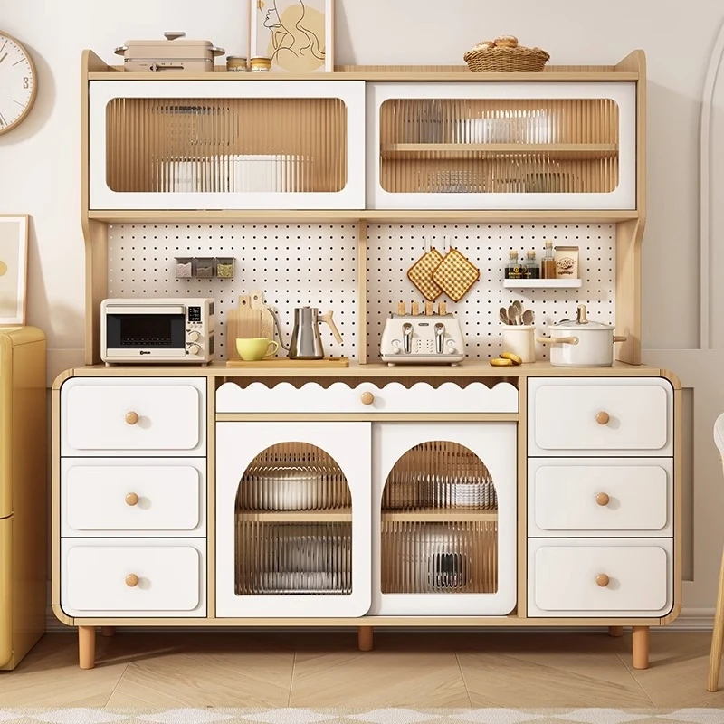 Luxurious Creamy Modern Minimalist Sideboard Cabinet - Elegant Kitchen and Living Room Storage with Wine Rack - Perfect for Home Organization