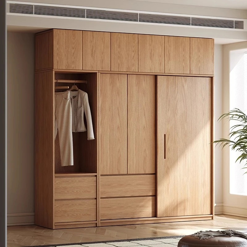 Eisenai Solid Wood Oak Sliding Door Wardrobe - Minimalist Modern Bedroom Closet in Natural Finish for Home Use