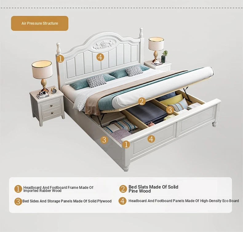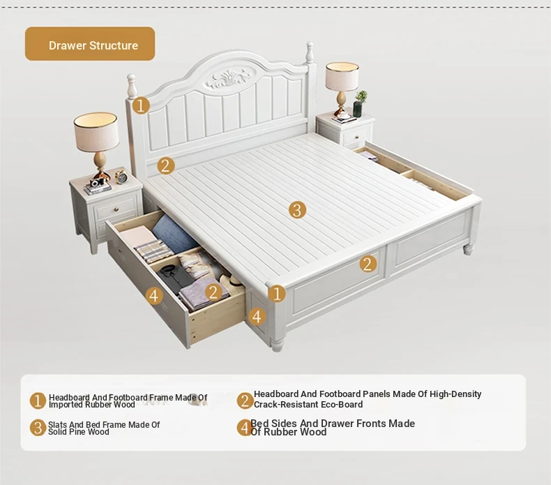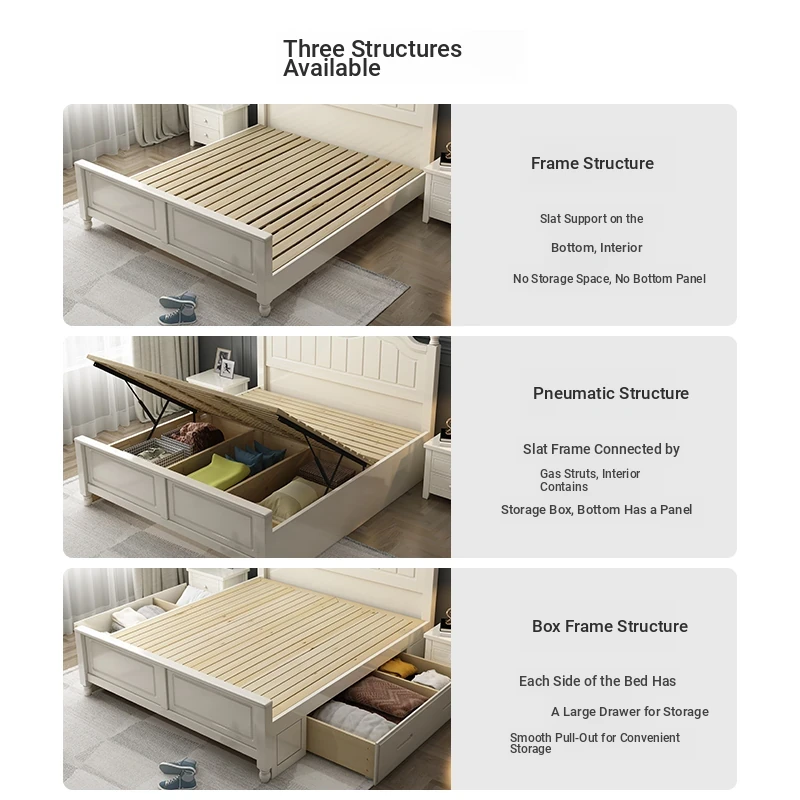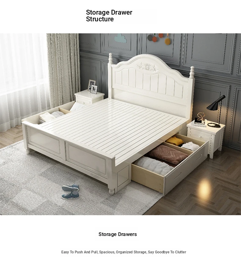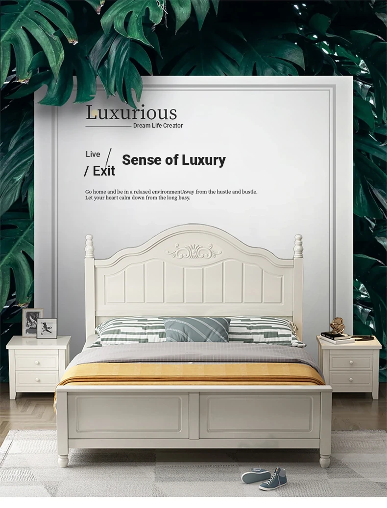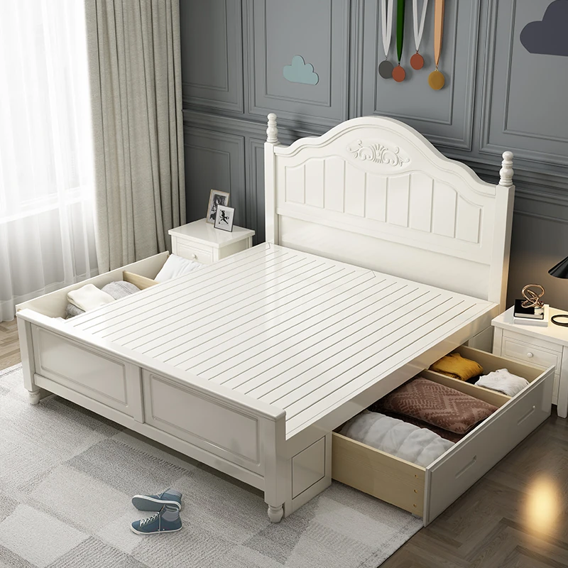 "Elegant American Solid Wood Bed - Modern Minimalist Luxury Bedroom Furniture, 1.8m Storage Double Princess Bed for Master Suite, 1.5m Size Available"