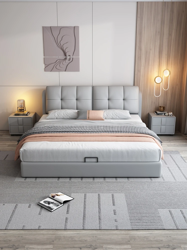 Luxurious Scandinavian 1.5m Double Bed with Soft Backrest and Storage - Genuine Leather Design, Perfect for Modern Interiors