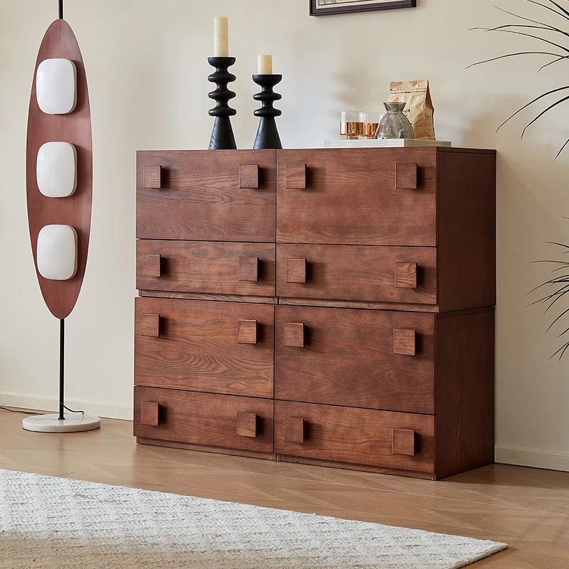 Elegant Oak Home Vintage Solid Wood Modular Storage Cabinet Set - Retro Chest of Drawers for Multifunctional Organization, Ideal for Stylish Interiors