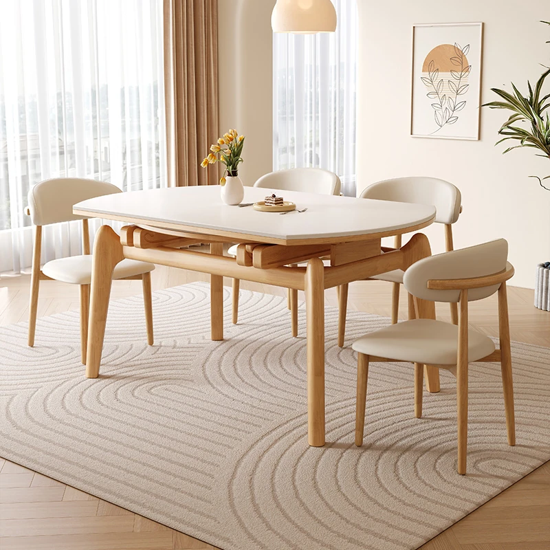 Introducing the 2024 New Collection: South Luxury North Elegance Solid Wood Dining Table with Rock Plate - Modern Minimalist Design for Small Homes, Perfect for Your Living Room! Rectangular Shape Ideal for Cozy Family Dinners.
