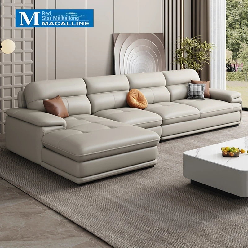 Kai Mersen Nordic Genuine Leather Sofa - New for 2024, Perfect for Any Living Room Size, Features Elegant Chaise Lounge Design, Crafted from Premium Top-Grade Cowhide, Made in Foshan, Guangdong.