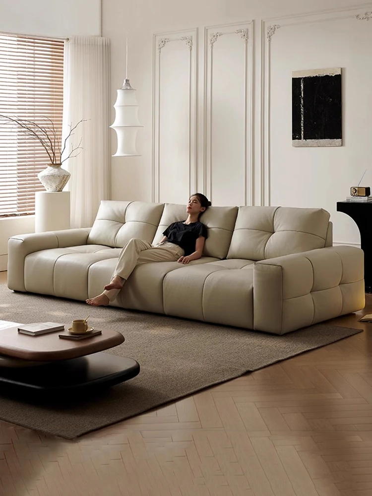 Naiqiu Pixel Leather Straight Sofa: 2024 New Tofu Block Monte with Adjustable Backrest – Perfect for Your Modern Living Room!