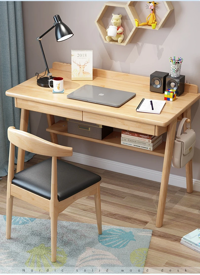 Scandinavian Minimalist Solid Wood Desk and Chair Set with Drawer - Perfect Study Desk for Home and Students