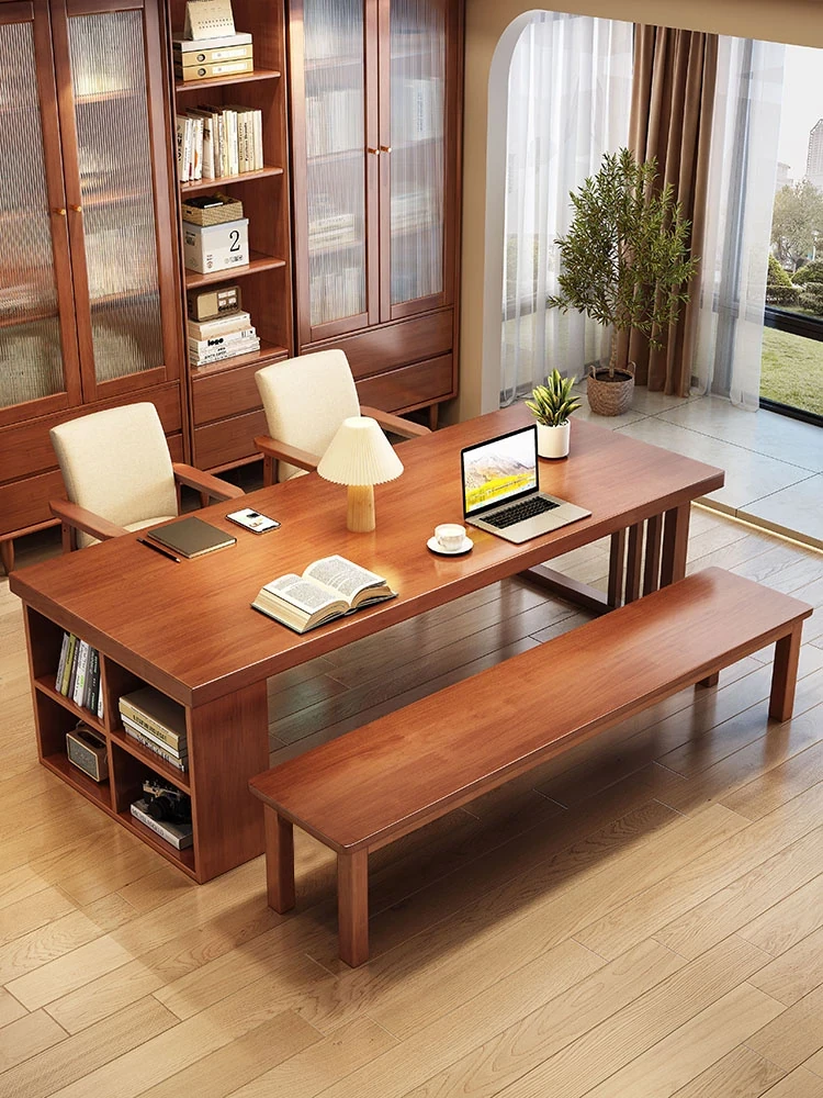 "Stylish Solid Wood Long Dining and Work Desk - Versatile Large Table for Home, Ideal for Study, Reading, and Entertaining in Your Living Room"