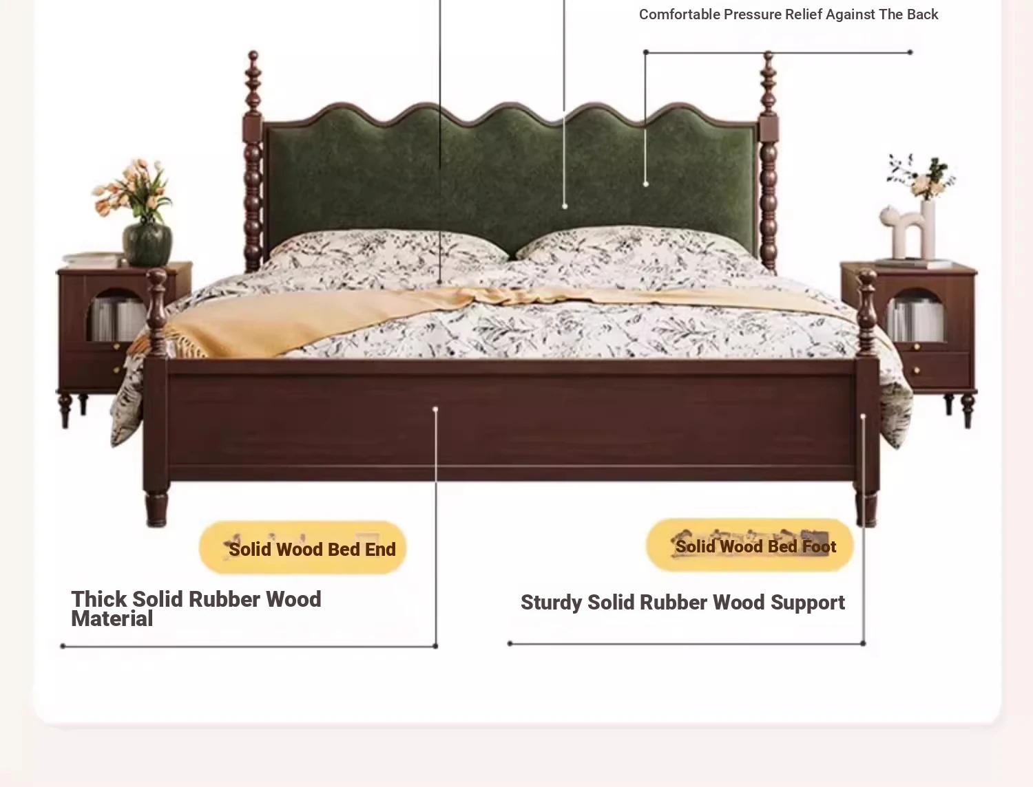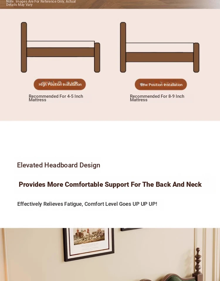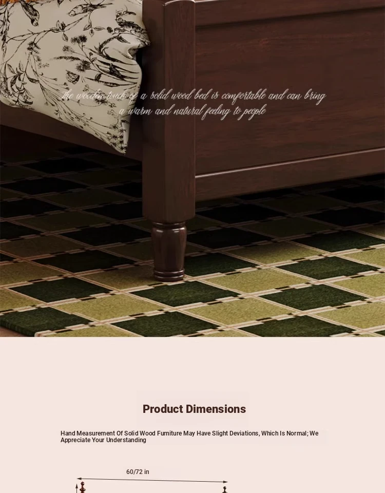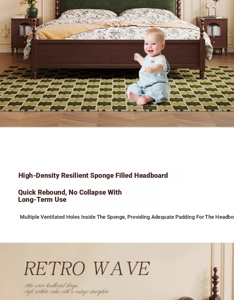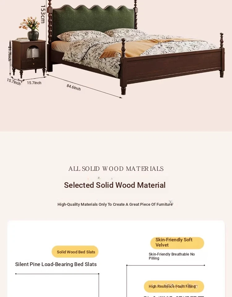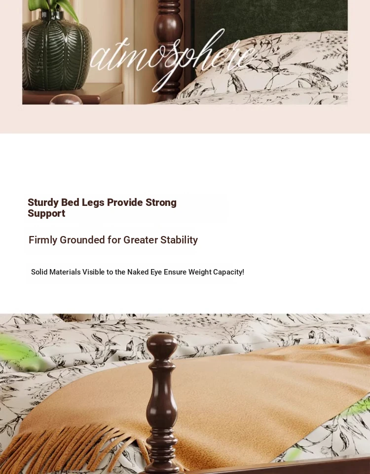 "Chic French Vintage Solid Wood Bed for Master Bedroom - 1.8m Black Upholstered Double Bed for Small Spaces"