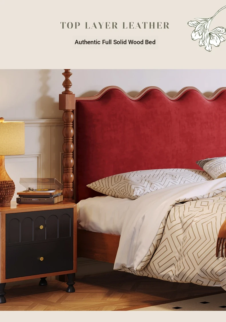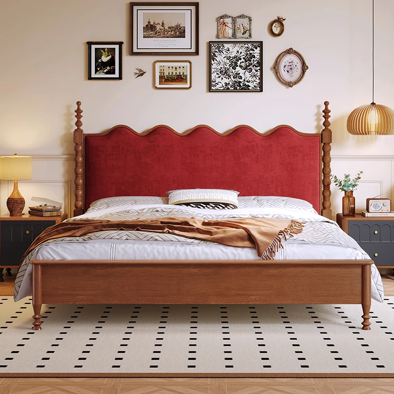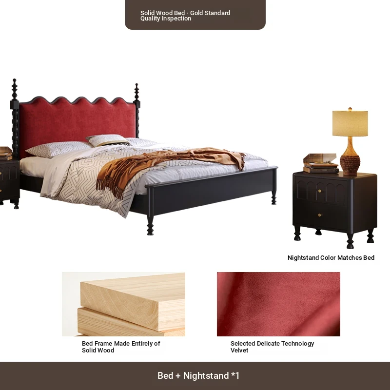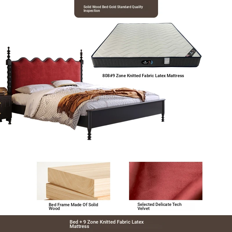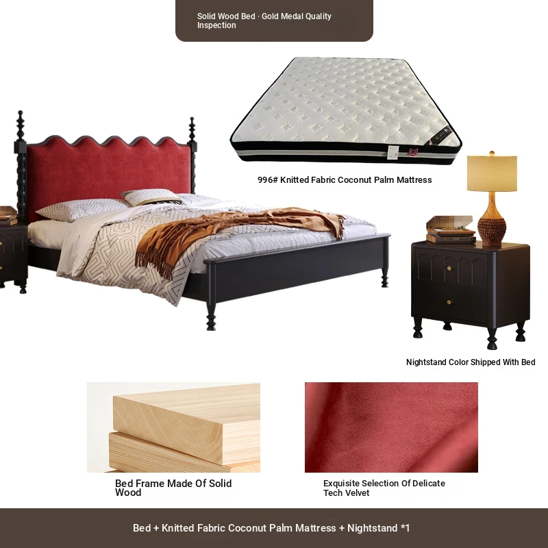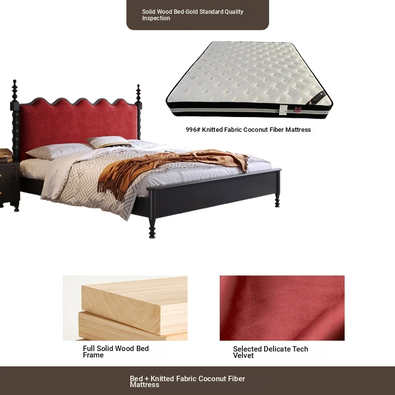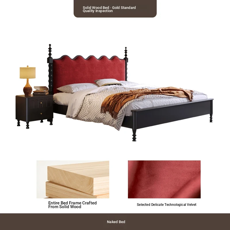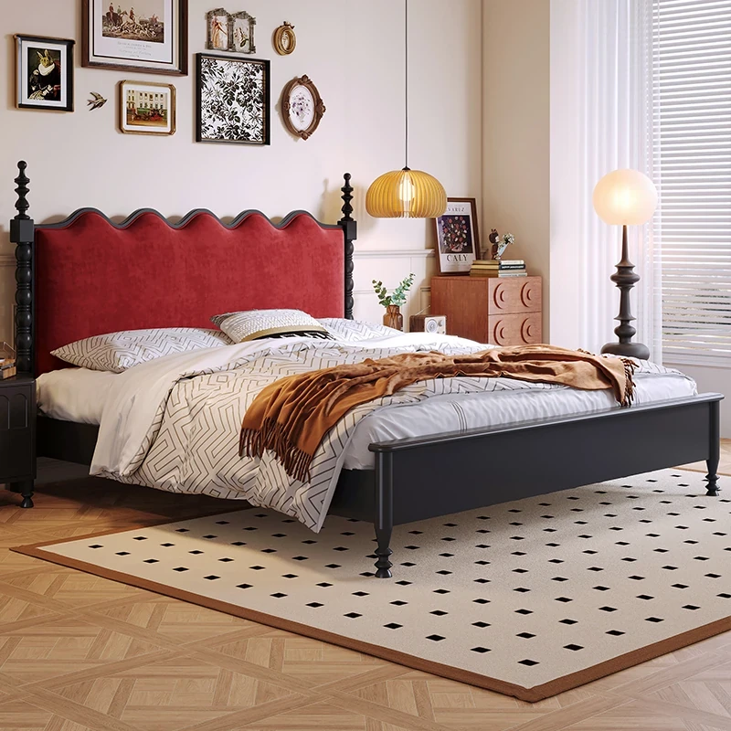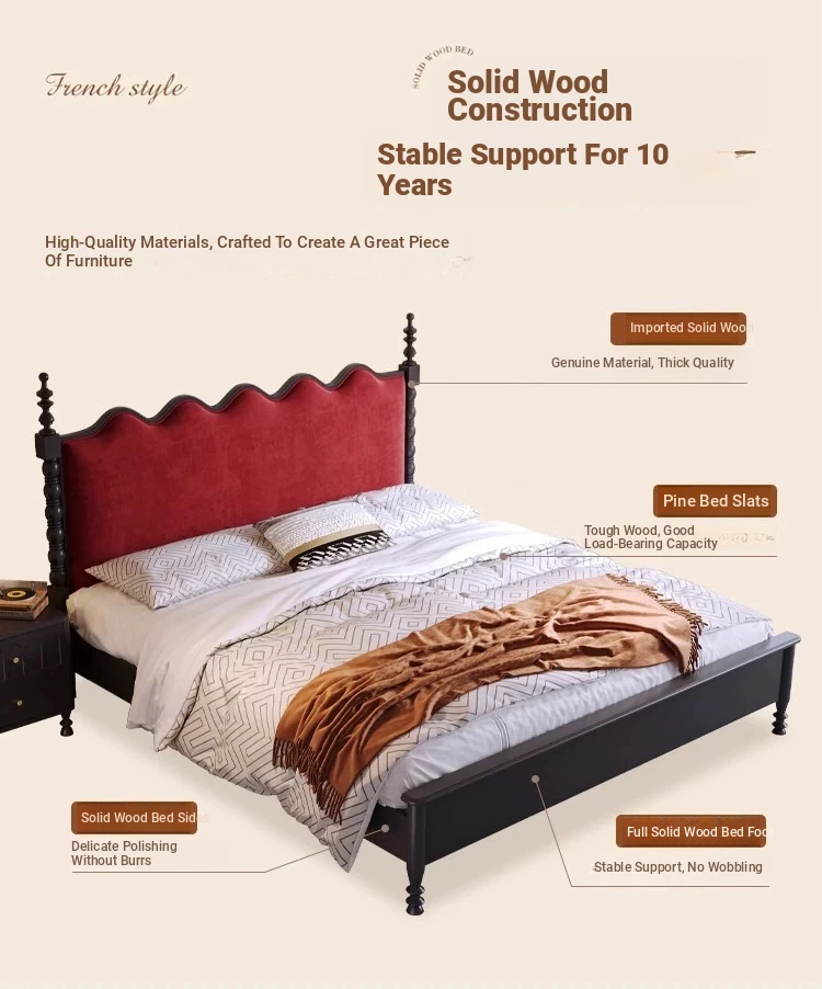 カイロイモン フランス風ヴィンテージ 1.8m 無垢材ダブルベッド ブラック アメリカンスタイル 主寝室用 結婚向け シングルベッドにも最適!高級感あふれるデザインで、あなたの眠りをより贅沢に演出します。