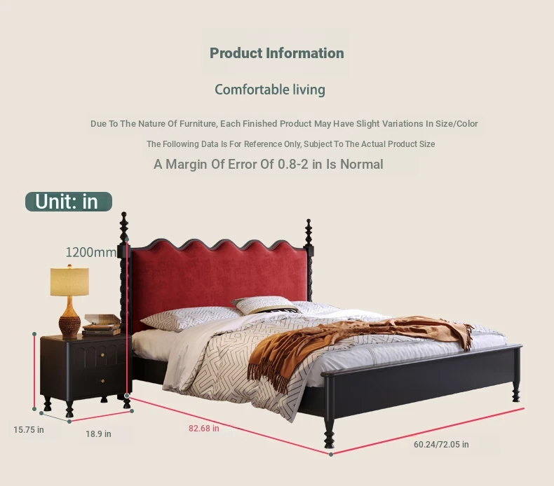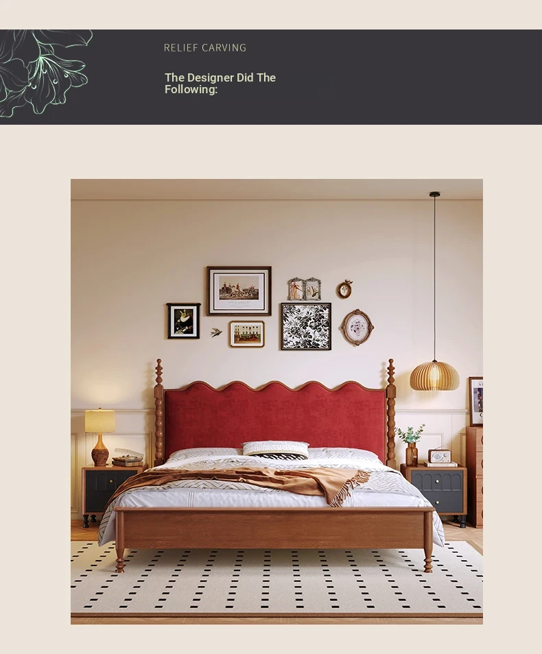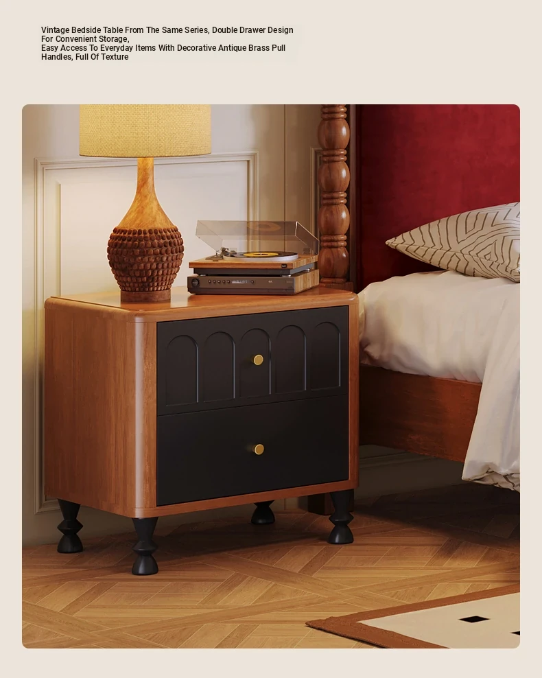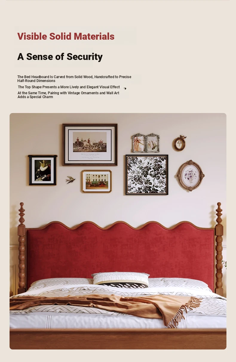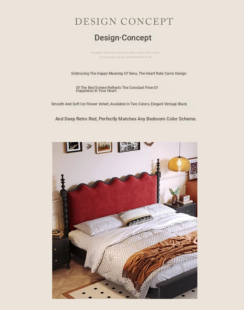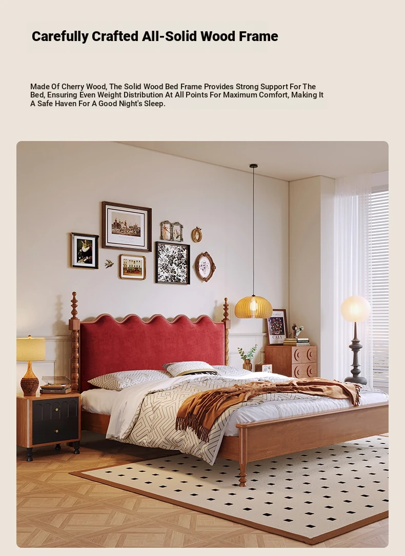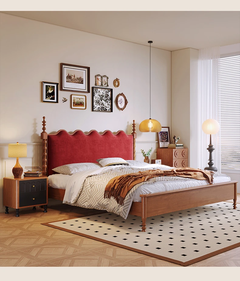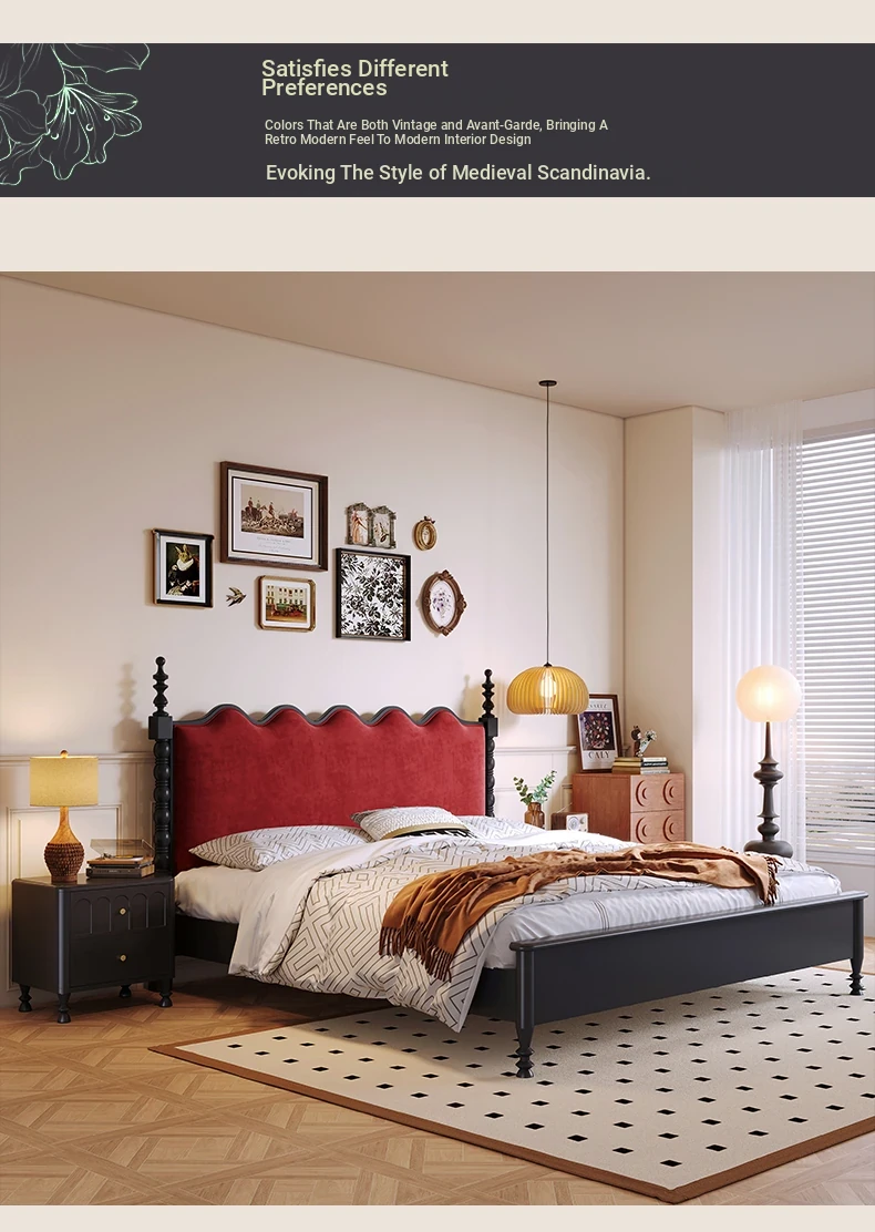 カイロイモン フランス風ヴィンテージ 1.8m 無垢材ダブルベッド ブラック アメリカンスタイル 主寝室用 結婚向け シングルベッドにも最適!高級感あふれるデザインで、あなたの眠りをより贅沢に演出します。