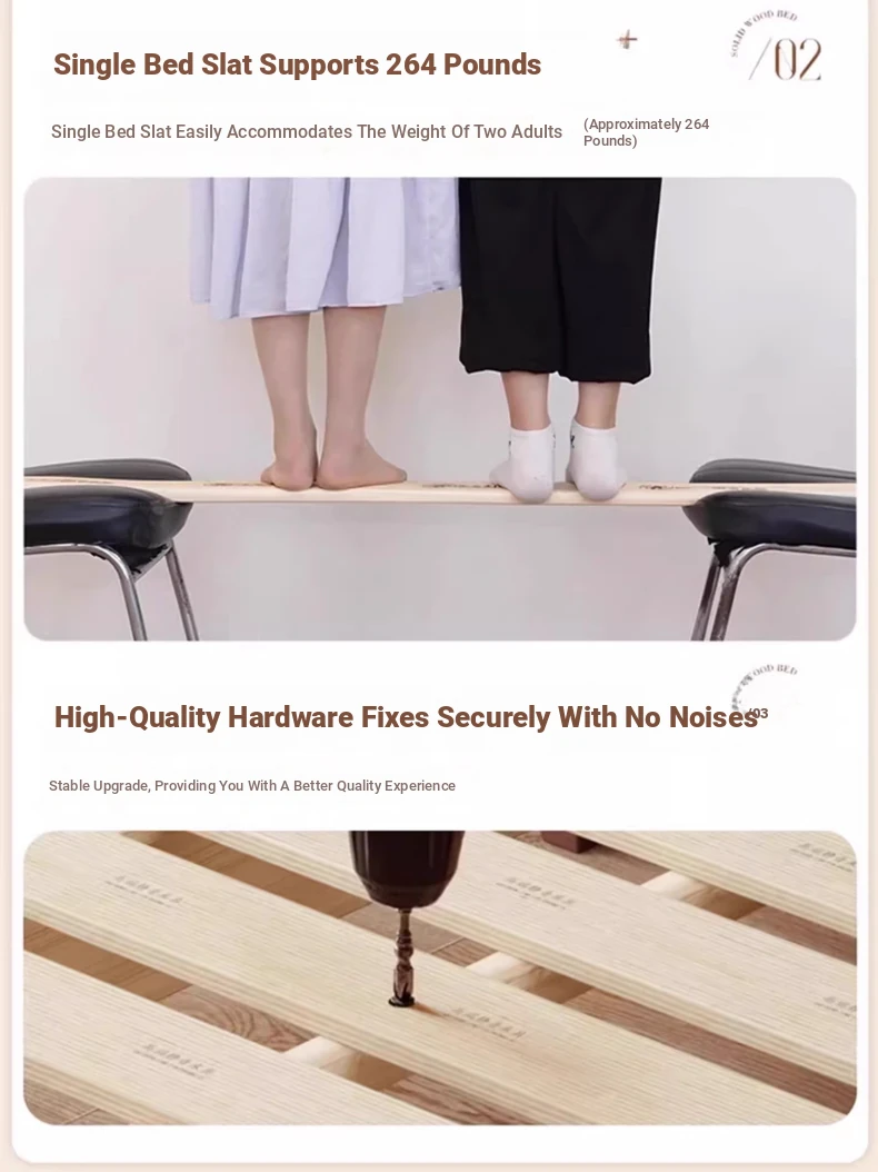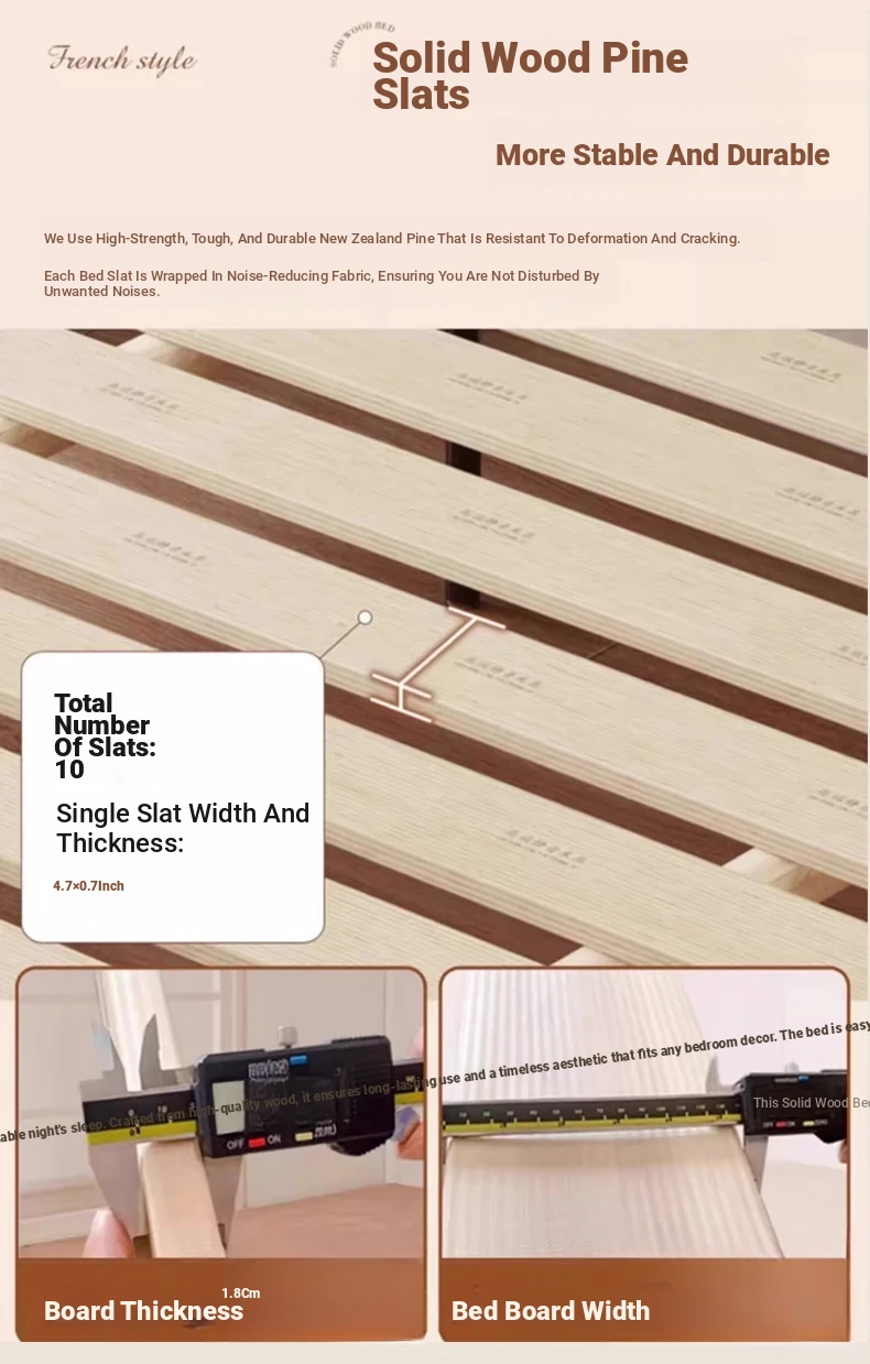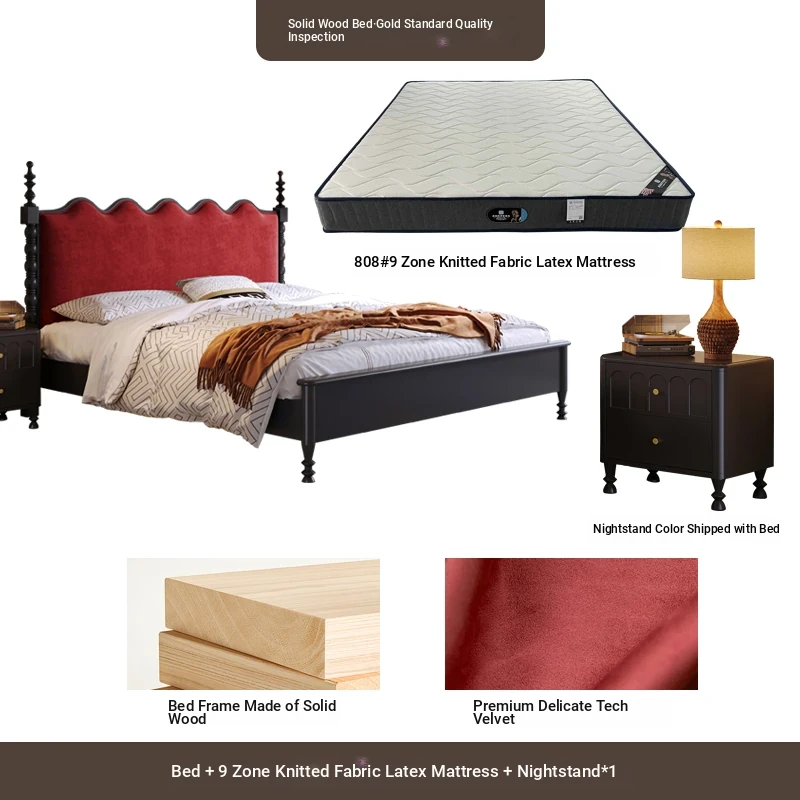 【中古風の無垢材ベッド】+9ゾーンニット生地のラテックスマットレス+1キャビネット 【中古風の無垢材ベッド】+9ゾーンニット生地のラテックスマットレス+1キャビネット